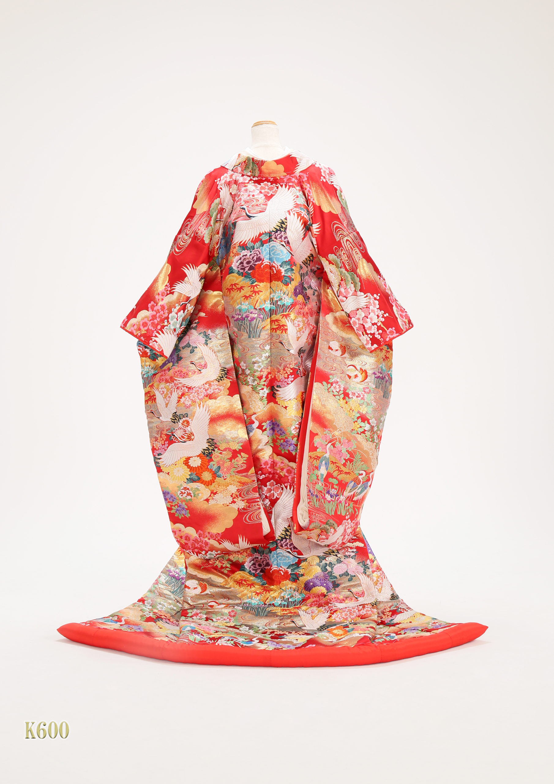 赤地銀彩鶴