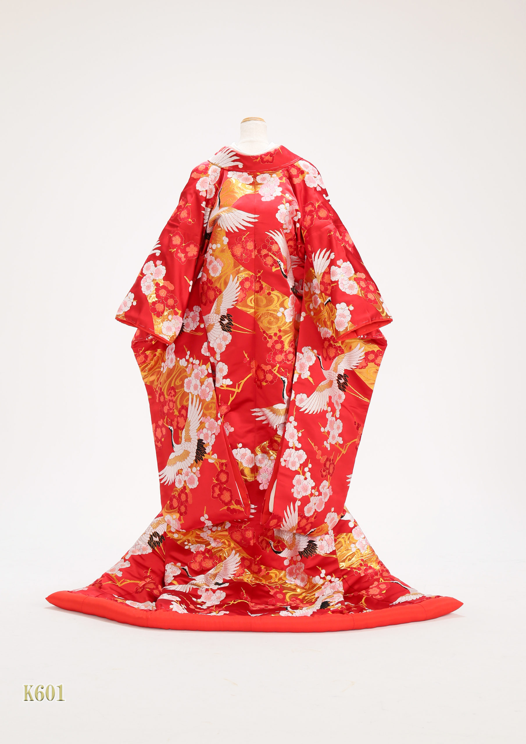 赤地梅に鶴